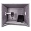 Im Inneren der Sprecherbox ist ausreichend Platz um z.B. ein Mikrofon mit Tischstativ und einen Laptop, Tablet oder Konzepthalter aufzustellen.